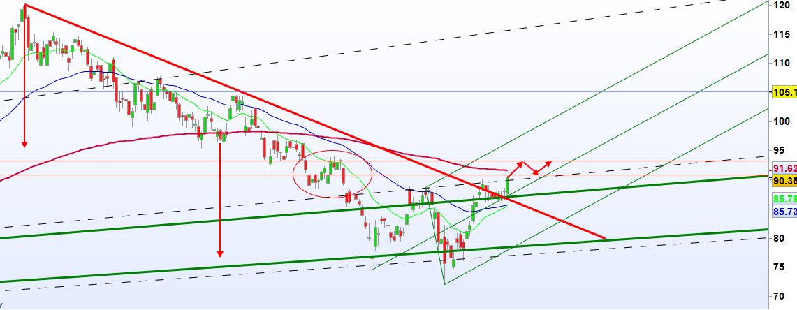 Análise completamente inviabilizada, esperemos por um sinal de inversão, caso contrário, esperar pelos 84 ou 72.