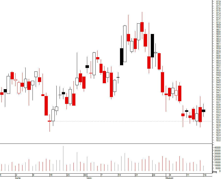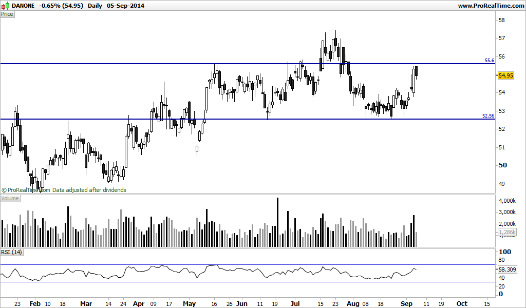 Danone não conseguiu superar os 56 euros e veio por aí abaixo, teve hoje o fecho mais baixo em 10 meses.