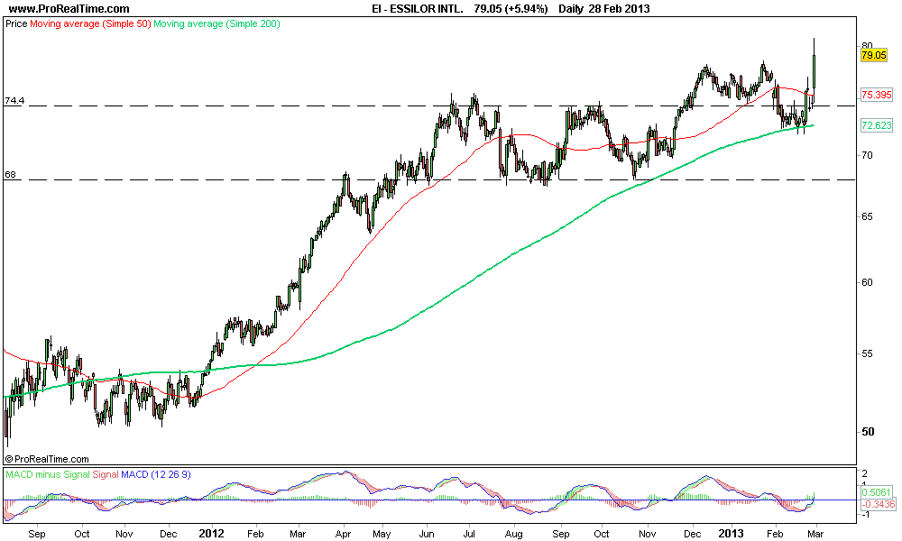 Essilor sobe mais de 7% após apresentar resultados e já foi aos 80 euros (máximo de sempre) e tem todas as condições para continuar a subir.