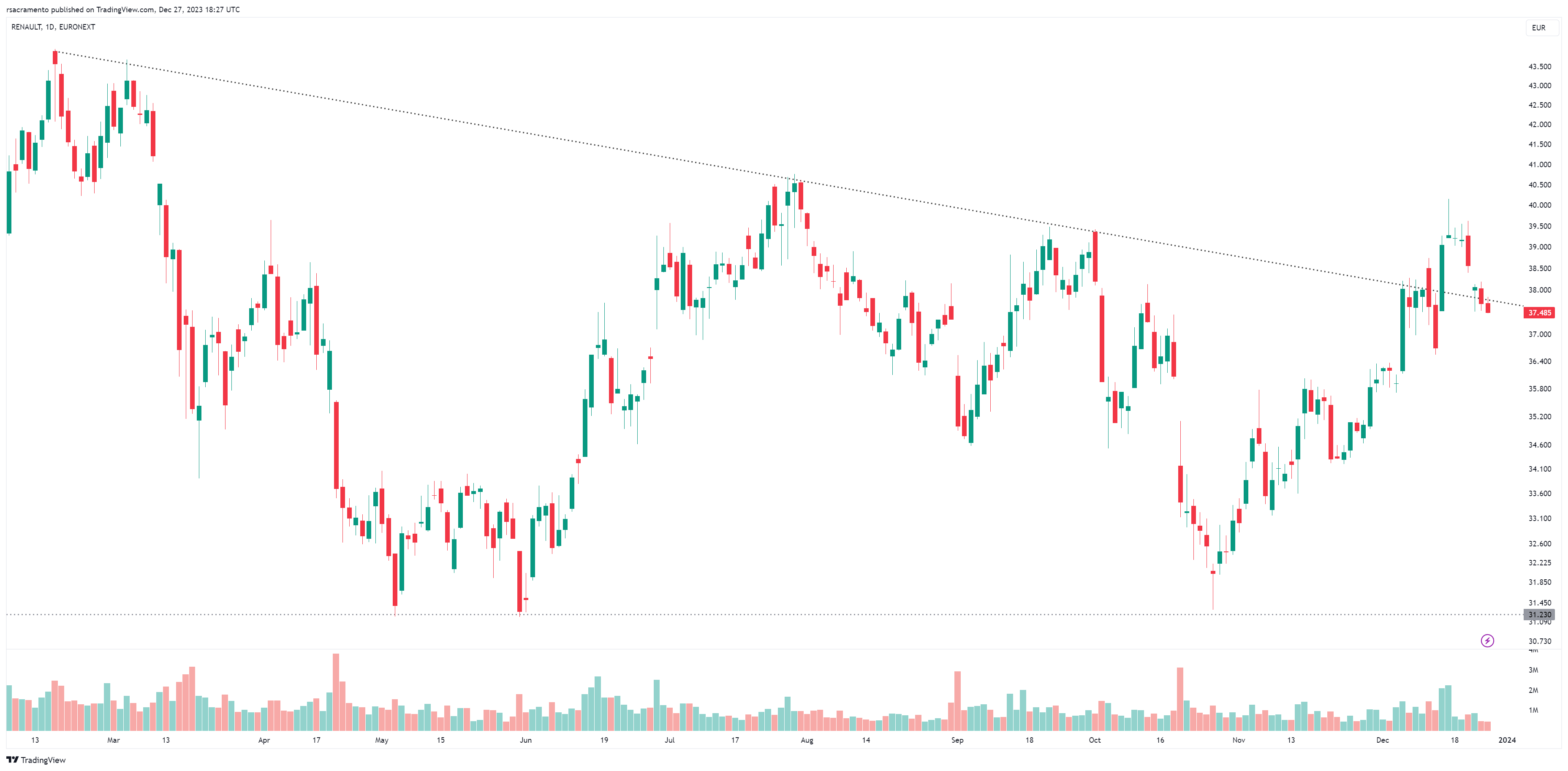 Muita força, num dia que cai o CAC. recompra de 3 milhoes de acçoes ajuda. Acredito que va aos 38. RSI aguenta até lá