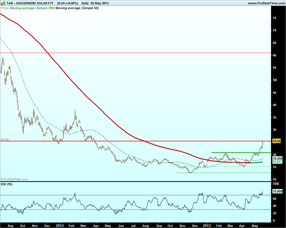 Entrada longa na Tan (Guggenheim Solar Etf) a 18,45$.