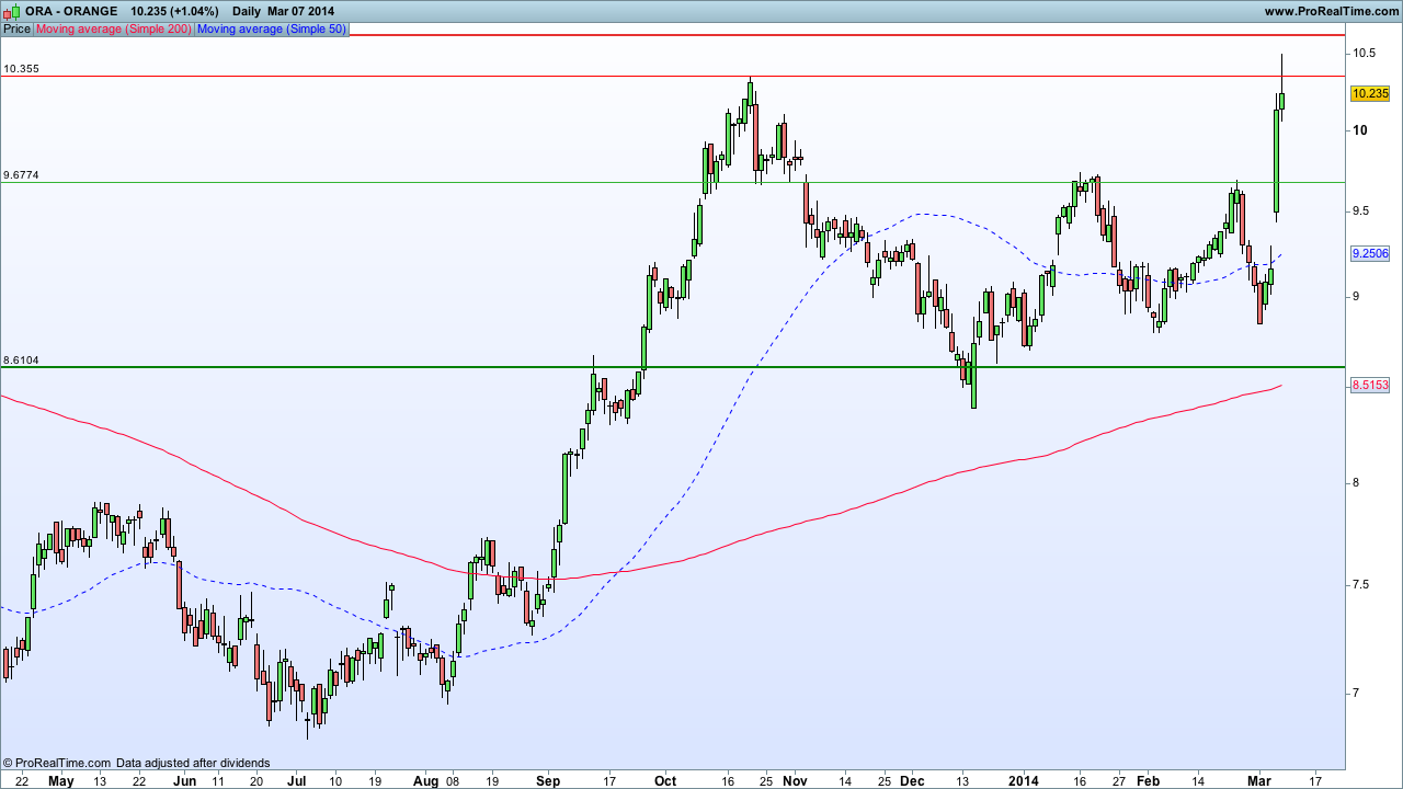 Posto isto, estou muito optimista relativamente à Orange, sendo que arriscaria uma entrada na quebra em alta dos 10,50€, ou na aproximação aos 9,70€.