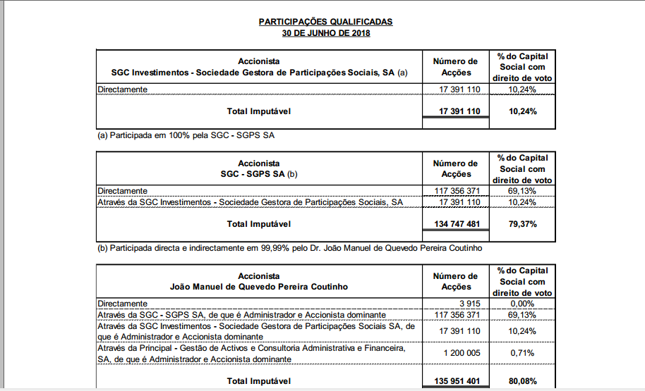 No ultimo Relatório e Contas do 1º SEM 2018 , só refere participações qualificadas de 80.08%.