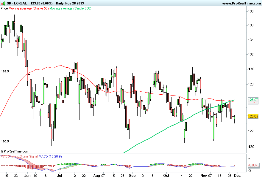 A L'Oréal prossegue a sua motónona lateralização entre os 120,5 e os 129,5.
