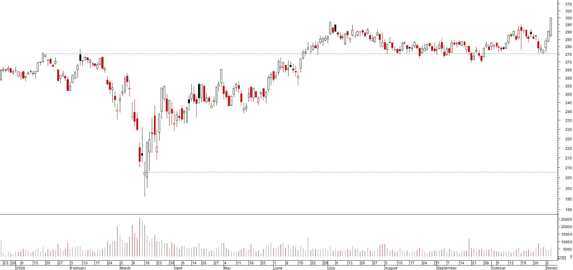 Há muito tempo que o gráfico da L'Oréal não é actualizado.