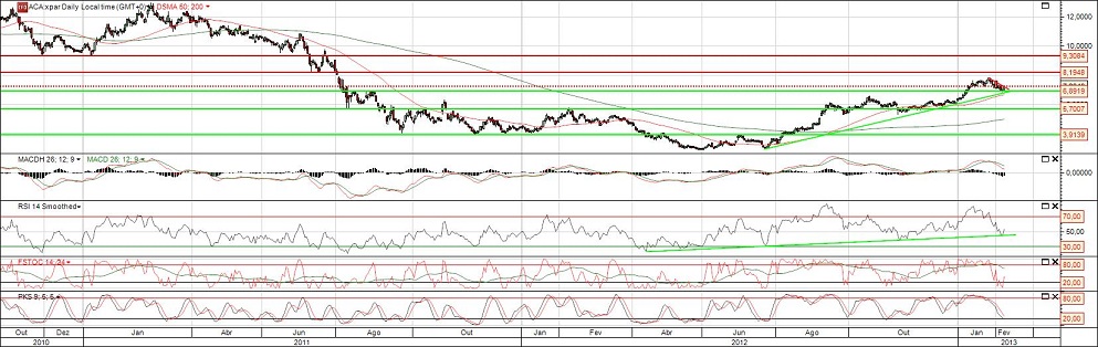 Aqui a ACA:xpar mostrou força após a quebra da LTD. Está em máximos de dois anos. Seria importante este swing ir um pouco mais acima do anterior para reforçar o impeto bull do título.