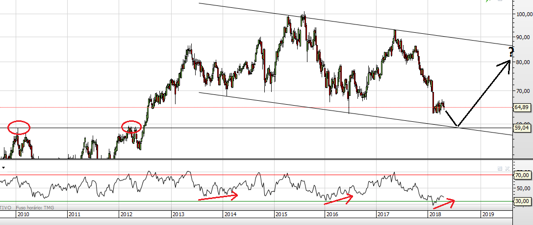 Essa zona já serviu de resistência em 2010 e 2012, poderá agora servir de suporte.