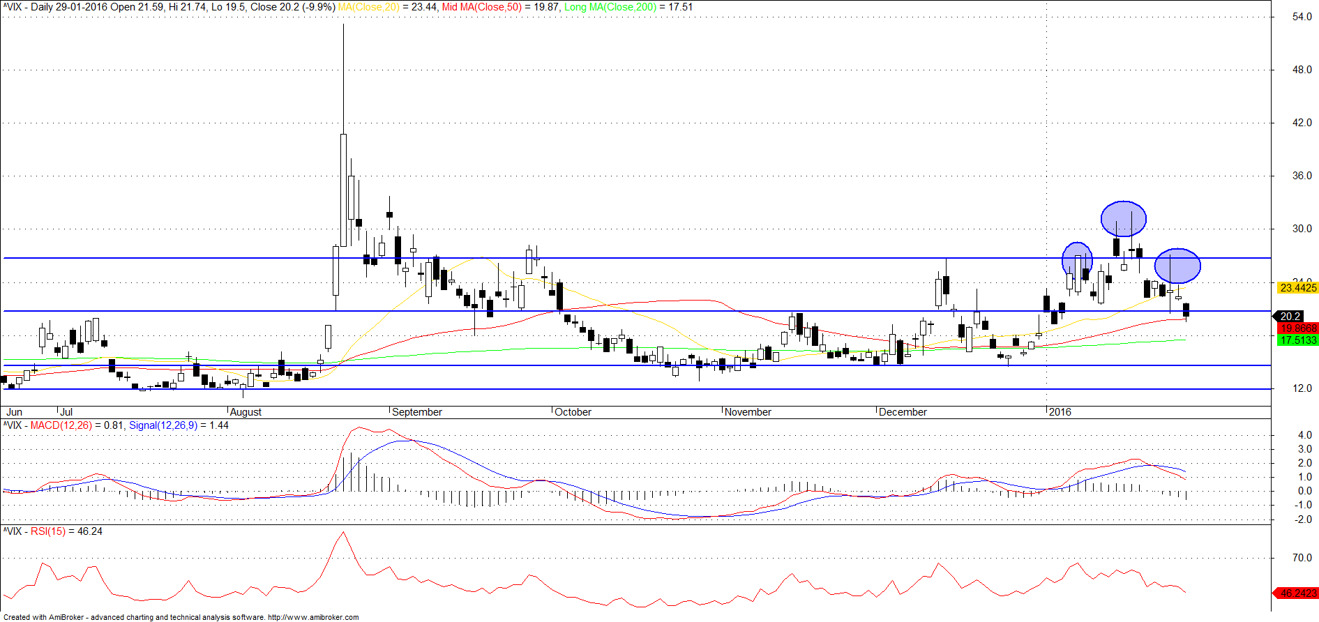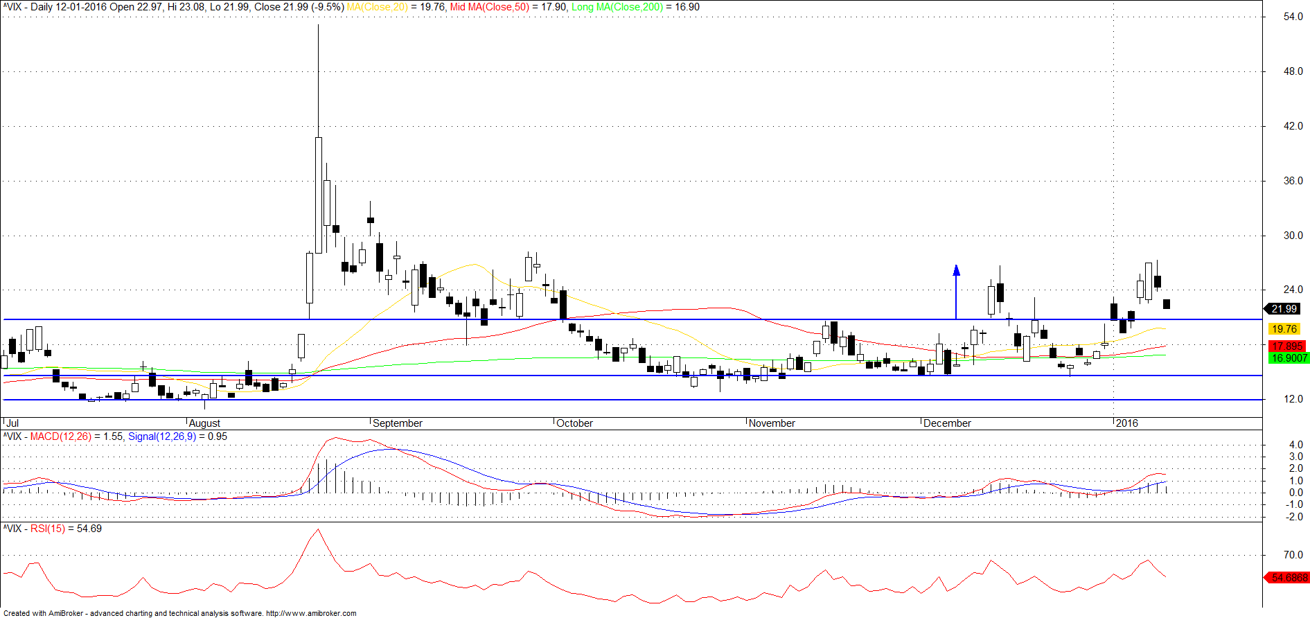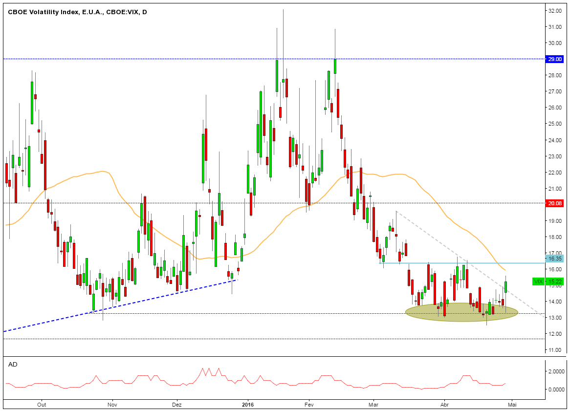 VOLATILITY S&P 500 (^VIX) - Reacção à zona de suporte.