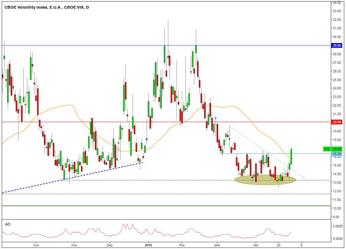 O VIX não está para brincadeiras , sobe 26% para nivel 24 .