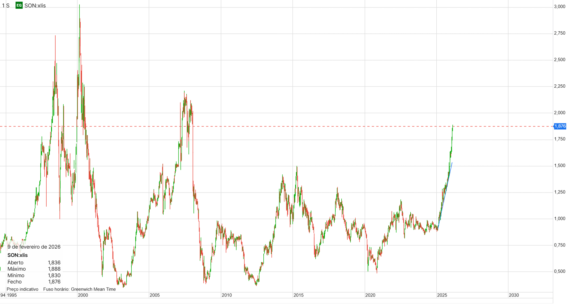 Ver o gráfico do último ano da Sonae, depois da pasmaceira dos últimos 5, parece estranho. Também não esperava tamanha subida, nem mesmo no cenário mais optimista. Agora parece uma questão de tempo até chegar aos 2euros