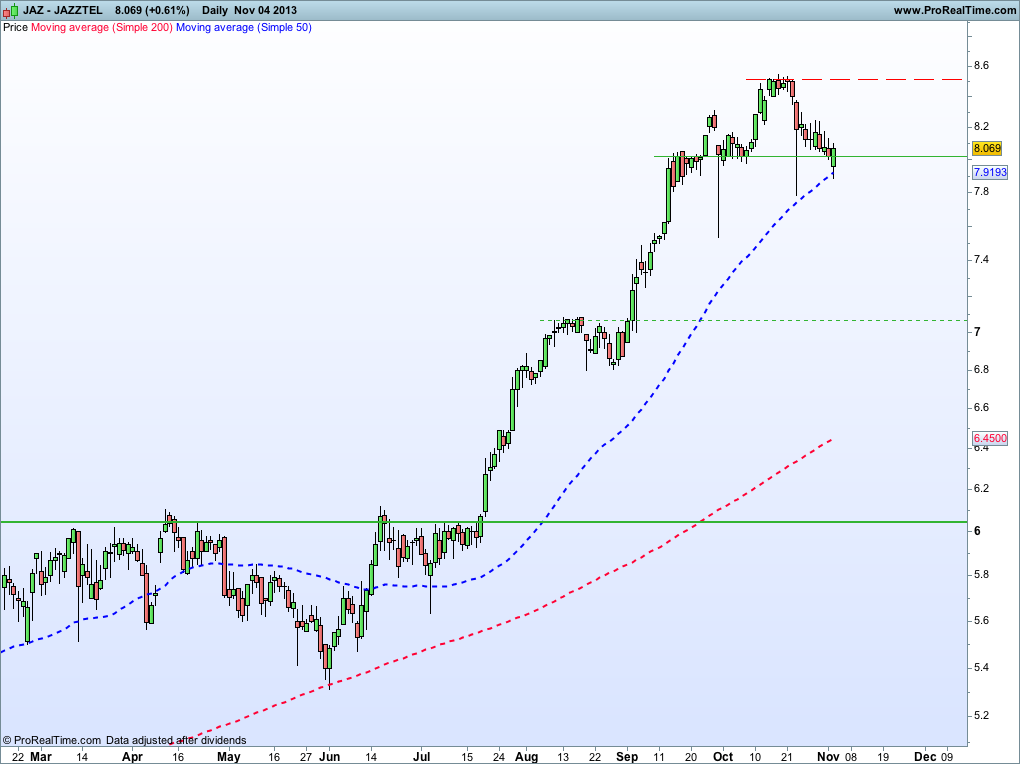 Ulisses Pereira Escreveu:Caro conterrâneo, a Jazztel efectuou um "reverse split" de 1 para 10, ou seja, quem detinha uma acção passou a deter 10, o que fez com que, por ajuste, a cotação automaticamente tenha passado para dez vezes mais.