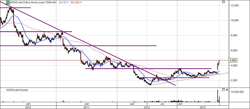 O meu senão nesta posição é que não consigo fazer uma leitura se esta oferta da Microsoft é boa ou não para o título. Pelos valores falados, é certo que o grupo accionista da Nokia aceite o negócio? É expectável que a cotação continua nesta trend altista de curto/médio prazo? Ou esta receita adicional irá retirar à Nokia a sua galinha dos ovos de ouro e deixar a empresa sem margem de crescimento futuro?