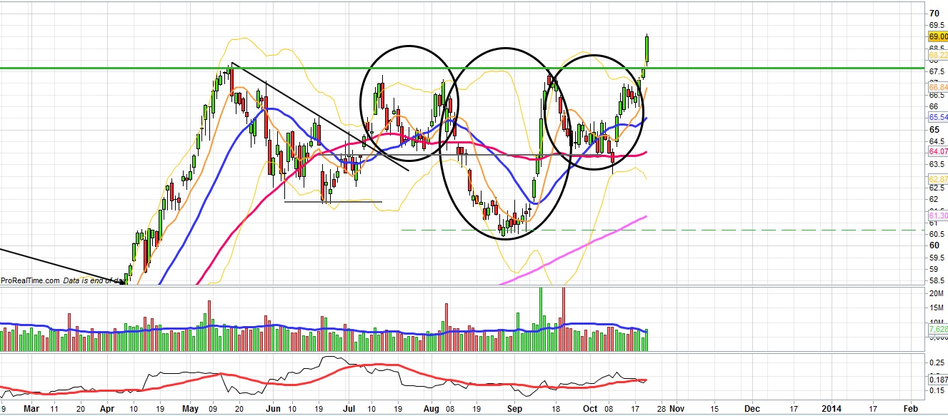 a antiga resistência dos 67 parece ter suportado a queda e gerado uma reacção positiva.