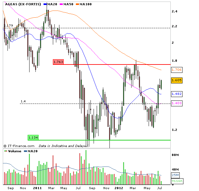 As a consequence of the reverse stock split, there are 243,121,272 ageas SA/NV shares outstanding. As of today, these shares are listed only on NYSE Euronext Brussels.