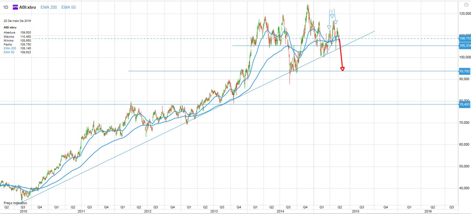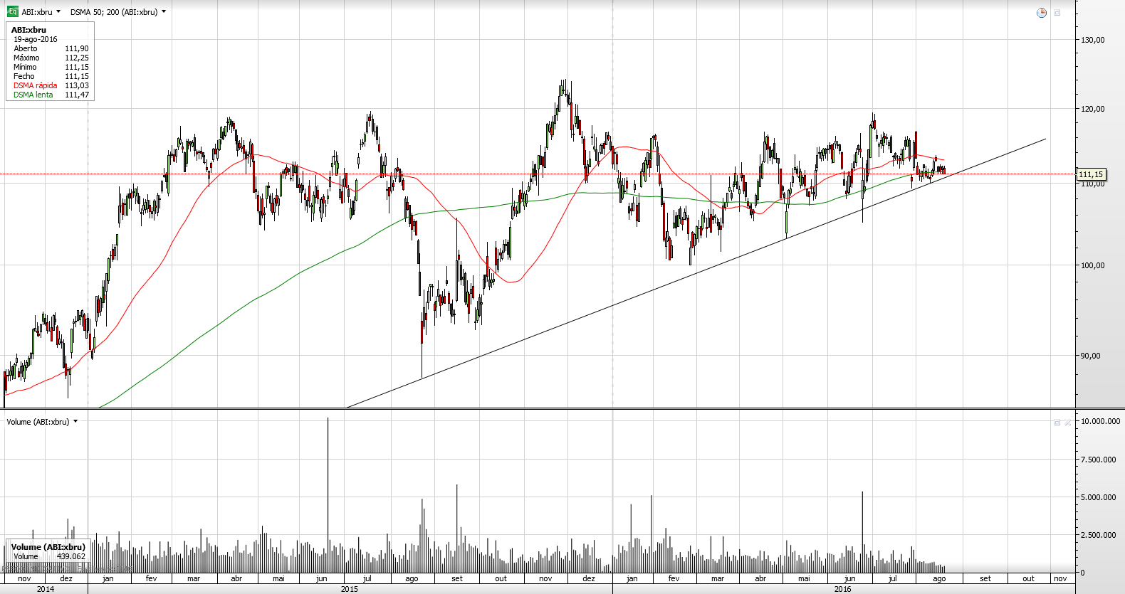 Por exemplo, no dia 29 de Julho saiu a noticia de que a china aprovou a fusão com a SAB Miller, existiu a reação do mercado, mas de lá até hoje, a cotação voltou ao mesmo patamar. A minha interpretação é que o mercado continua a aguardar por algumas decisões relevantes para o processo (Exemplo: estrutura de votação).