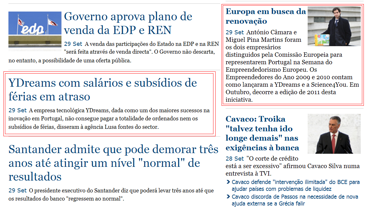 Lembro-me de ter guardado este snapshot quando vi estas notícias lado a lado e dei o nome ao recorte de Anedota YDreams.