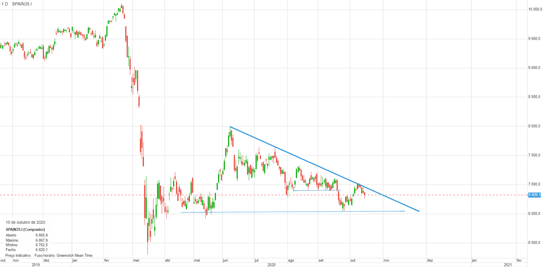 No geral olhando para o gráfico o IBEX esta claramente em Bear market. Quase todos os cenários políticos actuais são maus, embora no longo prazo umas novas eleições com o PSOE a ganhar (sem o fardo do Podemos) seriam menos mau e o bom seria uma vitória das "direitas" (PP+Cs+Vox).