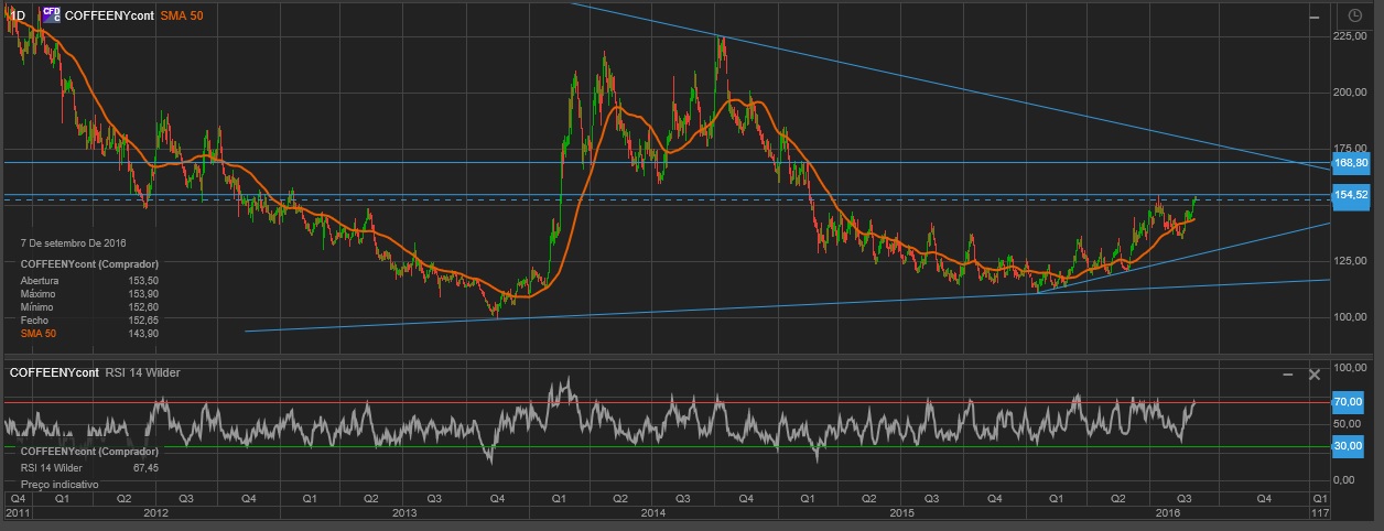 Esta notícia despertou-me a curiosidade, e parece que o café está mesmo numa fase interessante, caso faça um higher high agora.