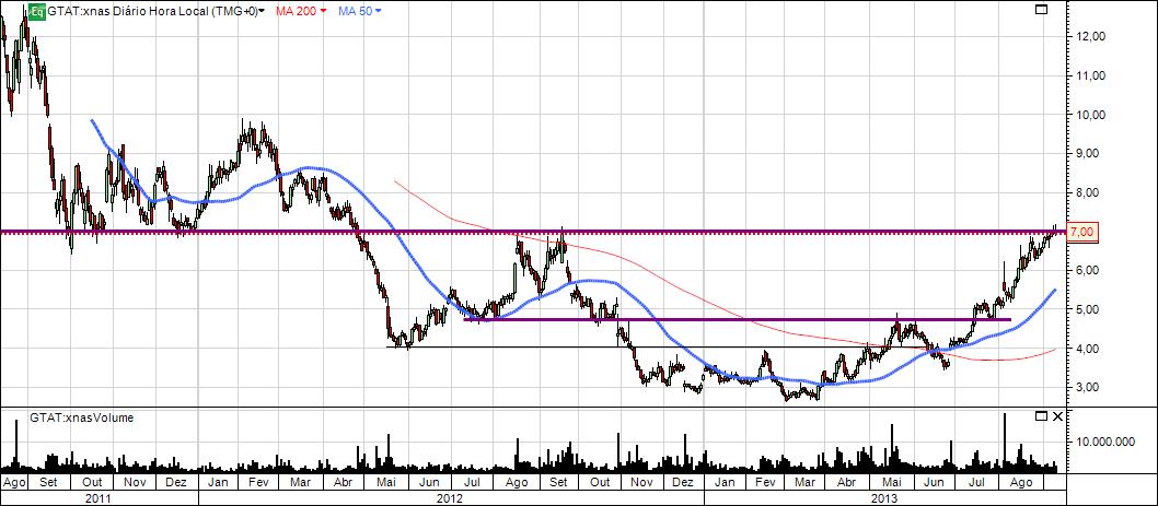 GTAT a fazer novos máximos relativos, desta vez com o rompimento de uma importante zona de resistência de longo prazo.