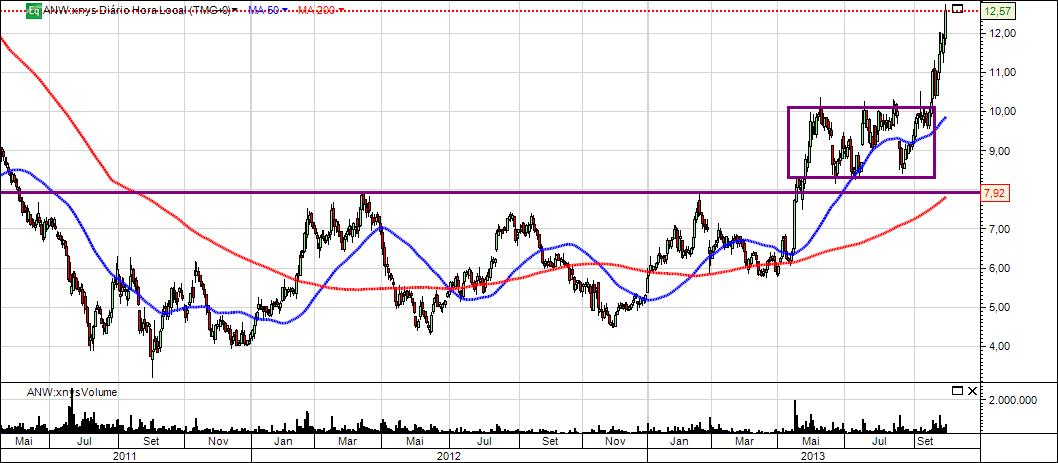 No gráfico diário podemos ainda observar um triangulo ascendente.