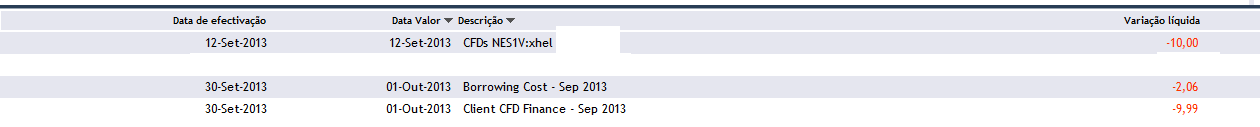 Bem... sinto-me gamado, uma pessoa abre um CFD que até tem um valor relativamente pequeno e paga estas comissões todas, mais a comissão de 10 euros para fecho que não aparece aqui.