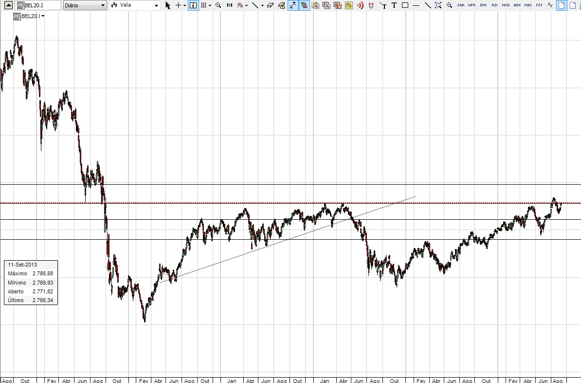 Existe neste momento três índices todos eles da Euronext com comportamentos iguais e todos eles a bater na resistência mais alta. Como muito se tem falado aqui de Bull market, nunca esquecer que estes sempre que atingiram estes valores tiveram um recuo. Para quem esta dentro é manter-se, mas para quem esta interessado em entrar e, como tenho lido aqui, talvez seja melhor esperar pela "ruptura" das resistências.