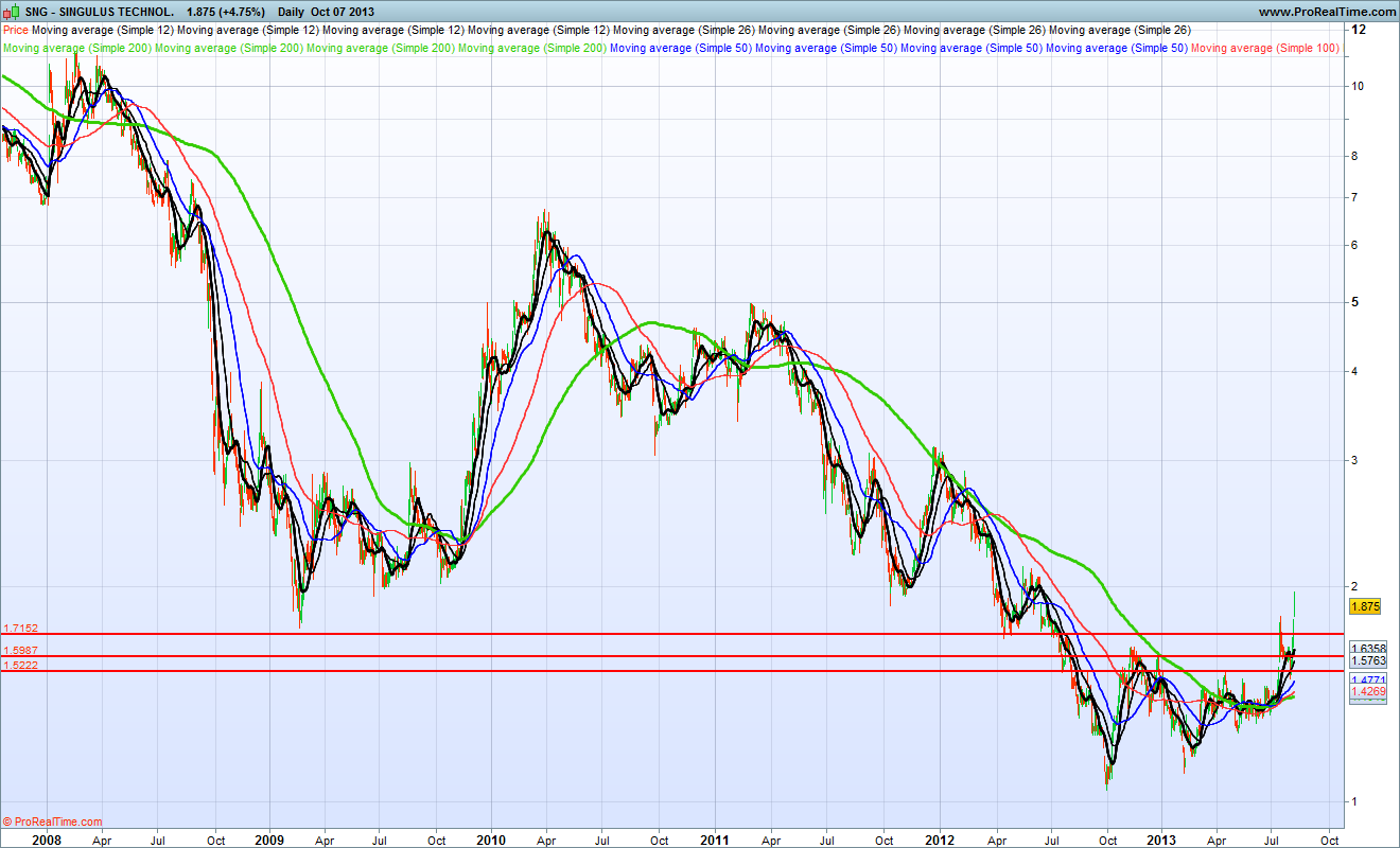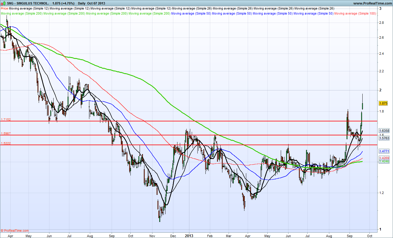 A Singulus, cotada do TecDax surgiu hoje na minha plataforma com um alerta: Breakout 1,60€.