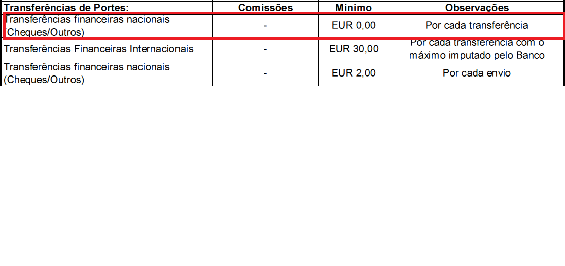 Eu nunca tive nenhum custo, mas os preçários mudaram e queria confirmar, a transferência é o " Custo de portes" da imagem que postei anteriormente?