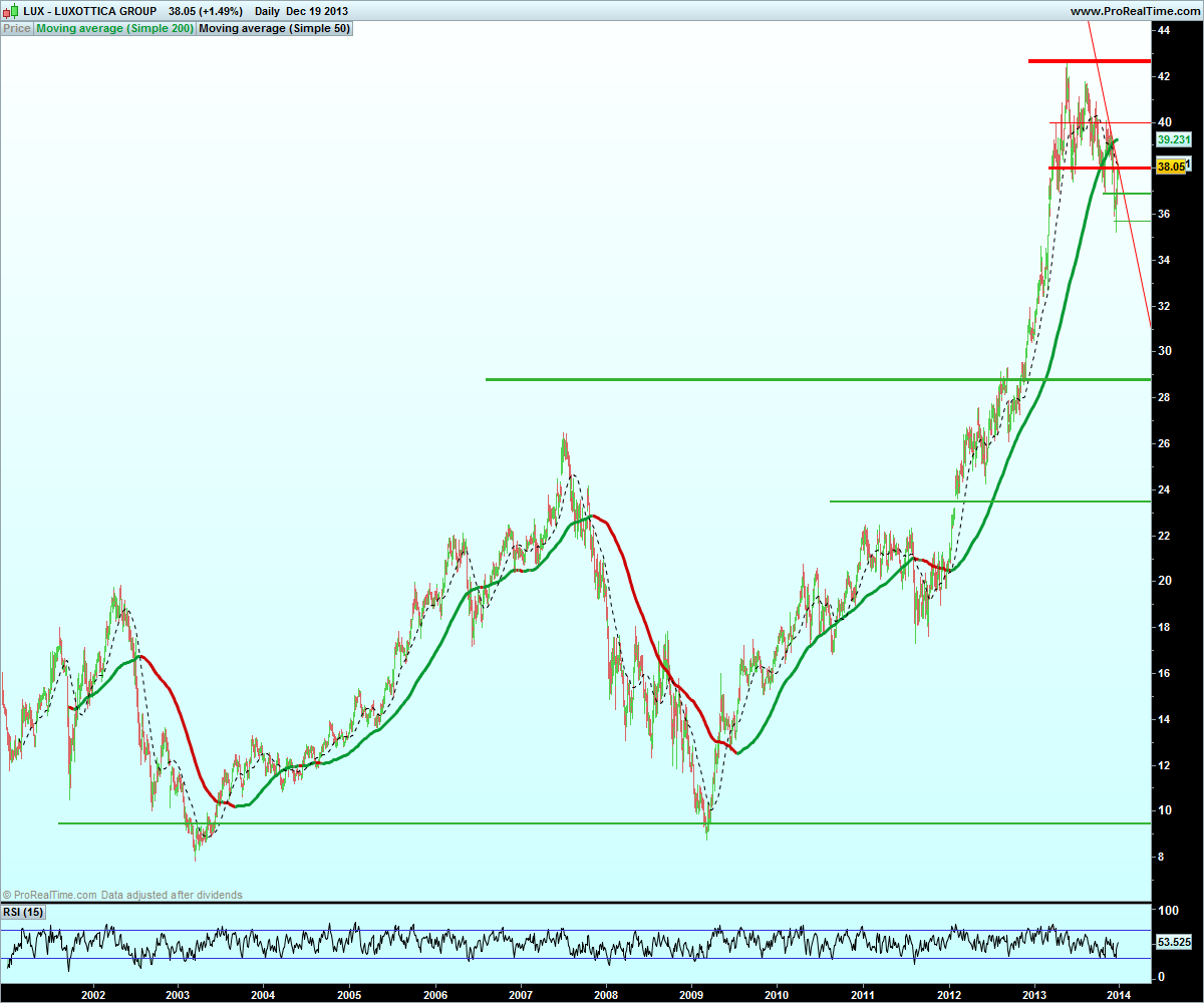 Luxottica Group SpA is an Italy-based company engaged in optical industry. The Company designs, manufactures and distributes prescription frames, sports eyewear and sunglasses. Luxottica Group SpA operates through two industry segments. The Manufacturing and Wholesale Distribution segment is engaged in the design, manufacture, wholesale distribution and marketing of house and designer lines of prescription frames and sunglasses, as well as of performance optics products. The Retail Distribution segment operates through retail brands, including LensCrafters, Sunglass Hut, OPSM, Laubman & Pank, Bright Eyes, Oakley O Stores and Vaults, David Clulow, GMO and stores located within host department stores. The Company’s proprietary brands include Ray-Ban and Vogue, among others, as well as the Company's licensed brands include Bulgari, Burberry, Chanel, Versace, Prada, Stella McCartney, Armani, Tiffany and Dolce & Gabbana, among others.