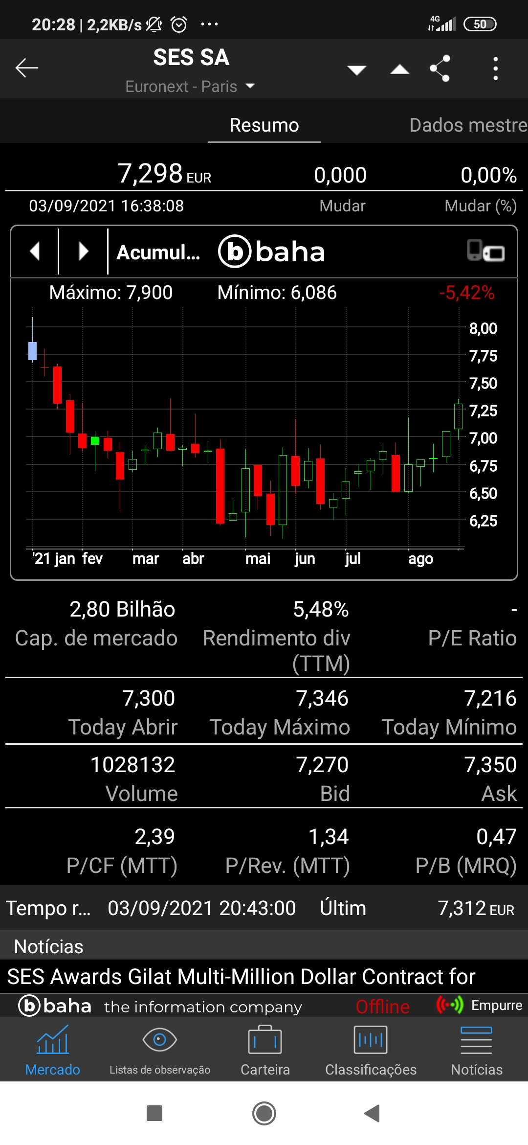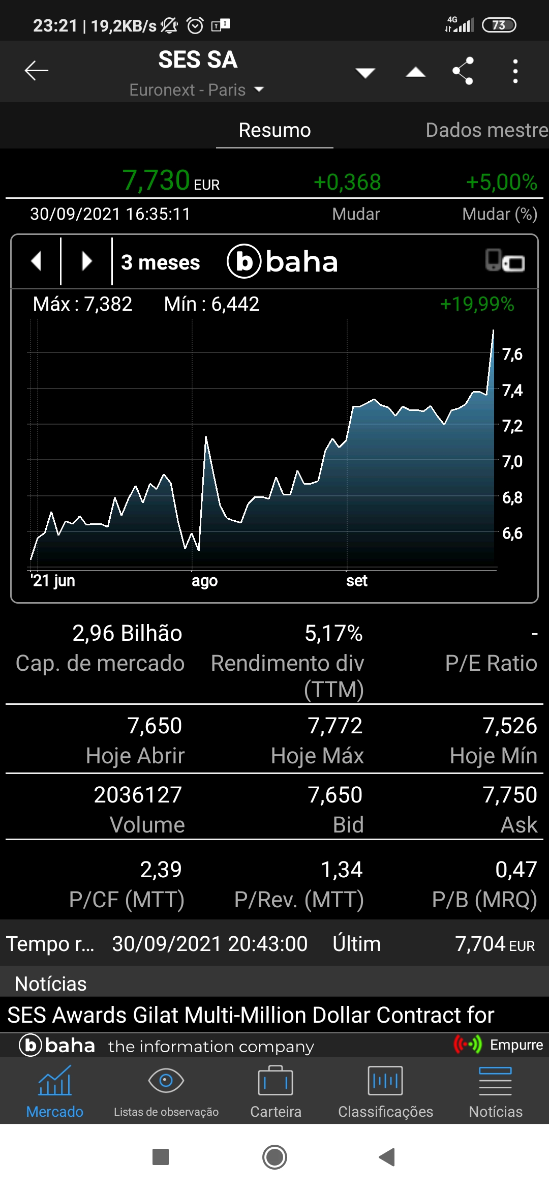 Passado 10 anos da última ação que comprei, comprei esta semana uma ação, a SES, porque o futuro são os satélites!!!.