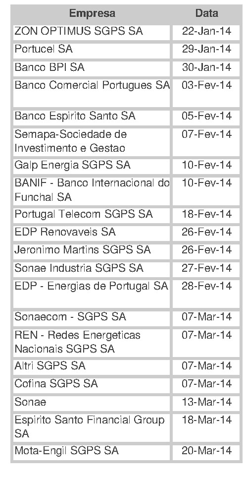 Alguém consegue postar o calendário de apresentação dos resultados das cotadas do PSI 20??