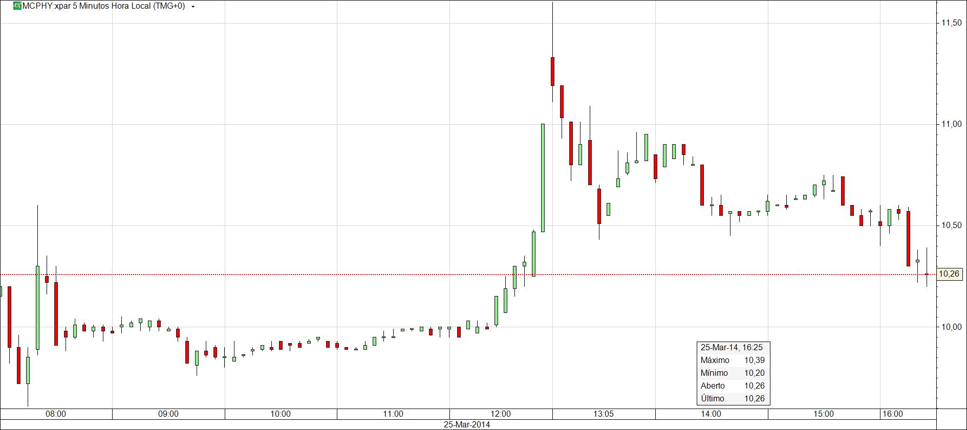 a MCPHY:xpar portou-se lindamente, chegou até os +30%, e fechou a sessão em +24%.
