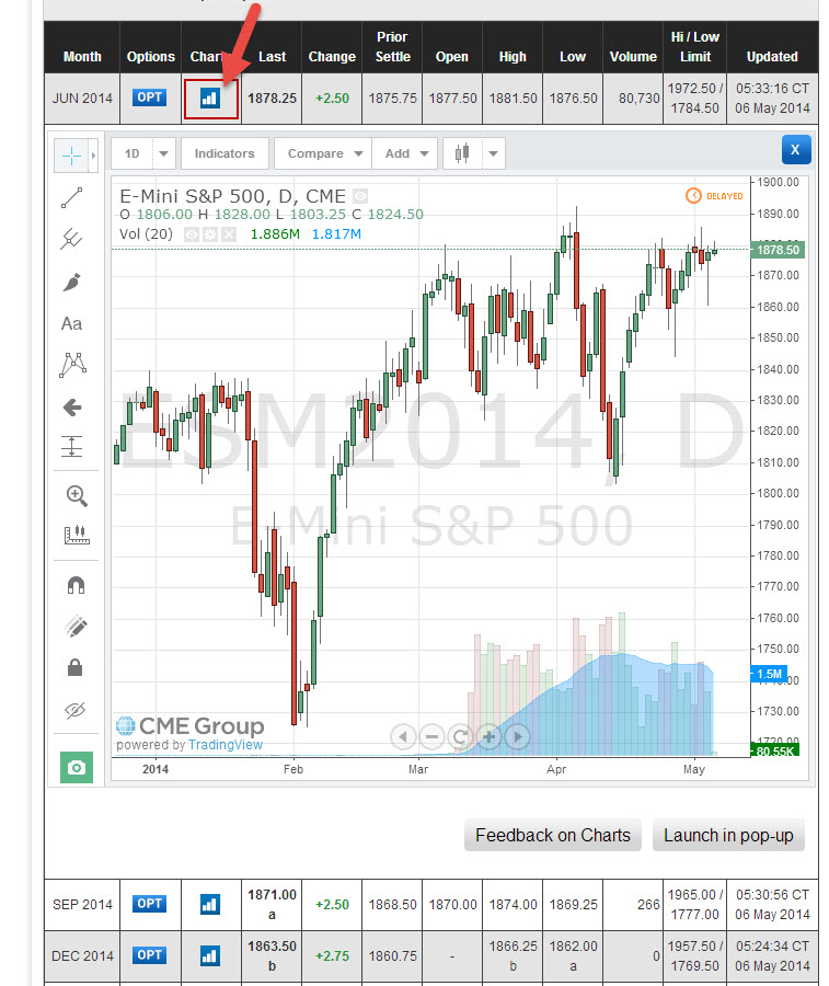 Imaginem-se a aceder ao site da CME, clicar no icon do gráfico para ver o que aquele contracto está a fazer e...
