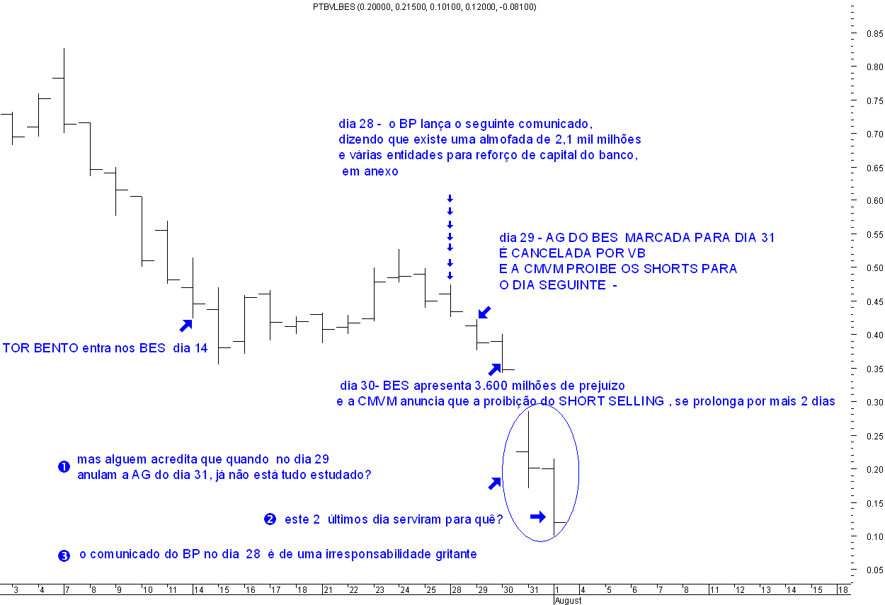 Se for essa a decisão, e se o BES negociar (não sei muito bem para quê...) provavelmente teremos alguma queda logo nos primeiros minutos nem que seja pelo efeito do desaparecimento do valor de mercado do banco (ainda deve valer uns 3% ou 4% do PSI).