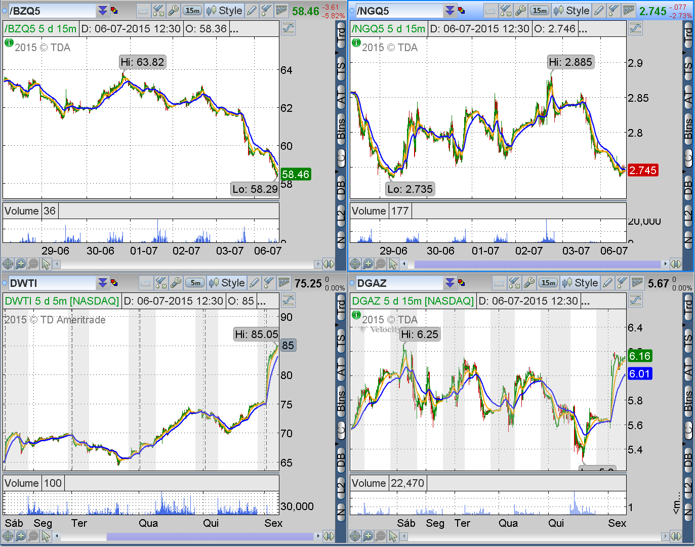 Os futuros do petróleo e do gaz a derreter e os DWTI e DGAZ a abrir com gap-up. São ativos excelentes esses o DWTI e DGAZ e seus contrários UWTI e UGAZ em todas as situações.