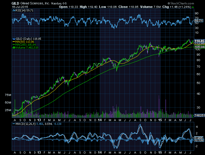 1. Gilead Sciences (NASDAQ:GILD): 168 biliões usd (mkt cap)/ cotação – 115 usd/ PER 13