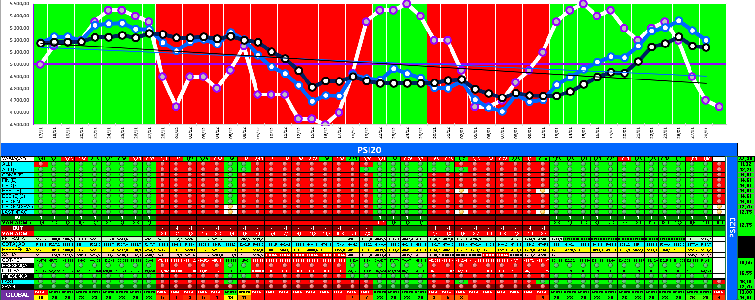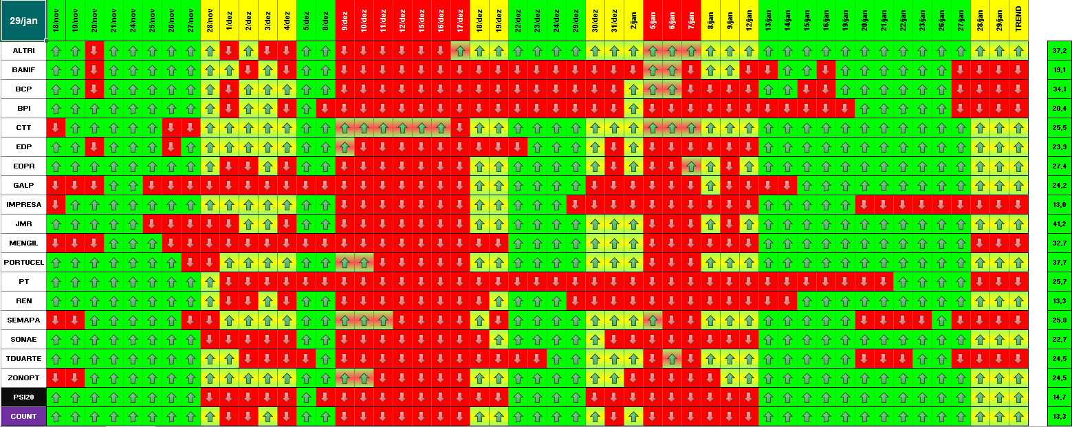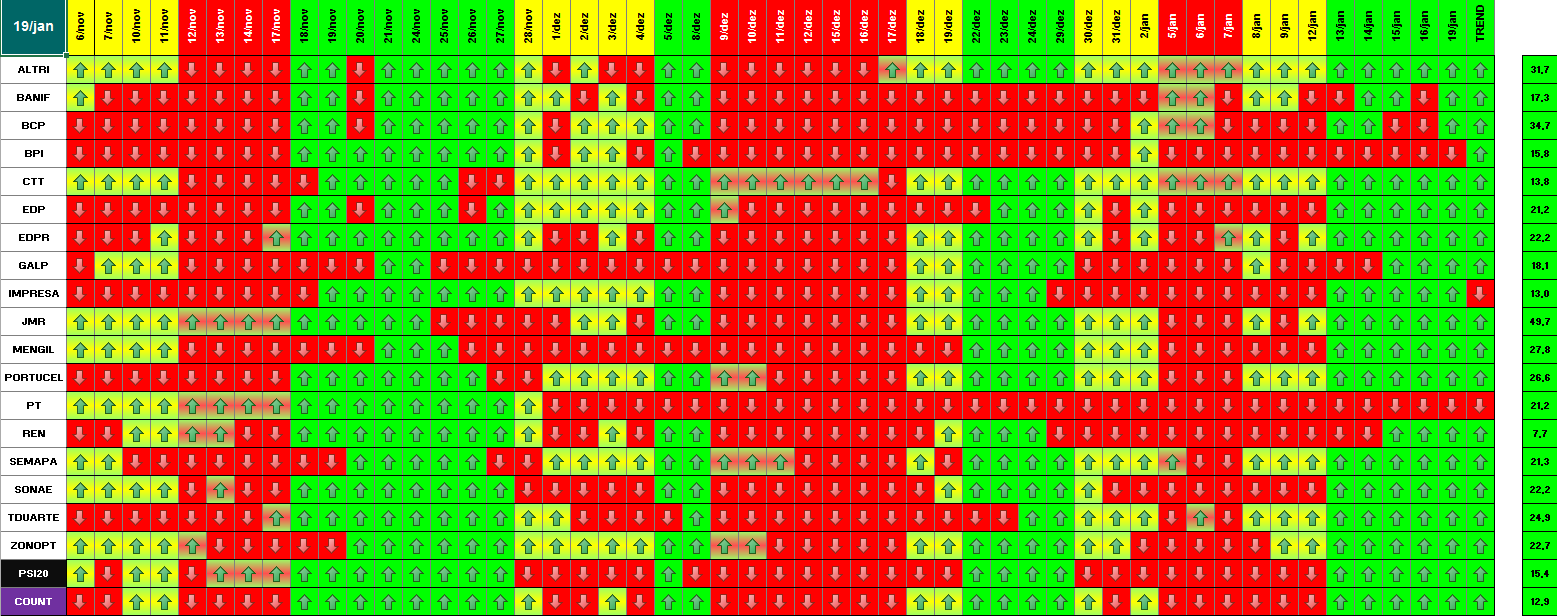 A modelo mais agressivo voltou a estar positivo. Hoje o indice PSI 20 ganhou energia... e deu sinal de arranque... ainda não totalmente confirmado.
