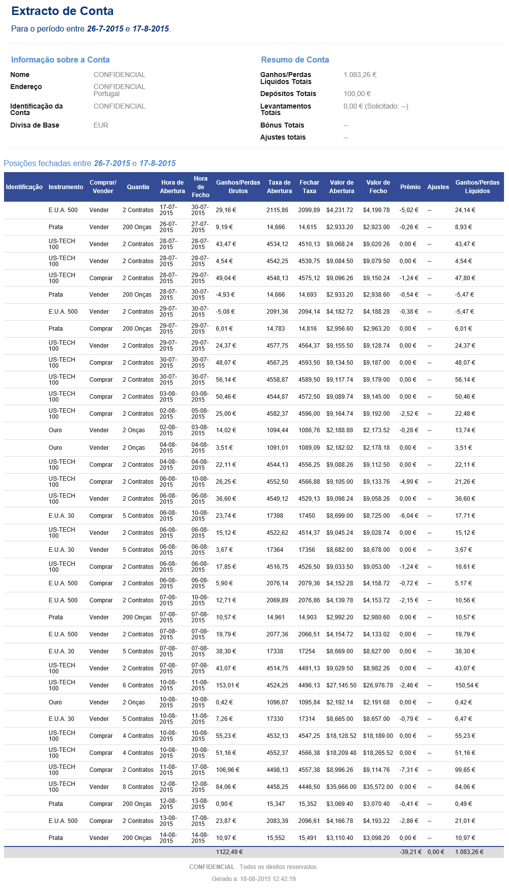 Durante este período foi necessário, conforme informado, efetuar um reforço da conta com o valor acumulado, por forma a não ser fechada nenhuma posição, devido à elevada exposição, e à diária imprevisibilidade do mercado.
