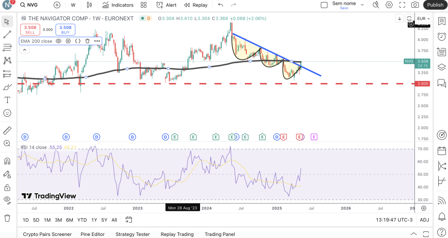 Tenho andando as voltas com o grafico da Navigator e talvez esta cunha descendente seja o padrao mais acertado neste momento , vamos acompanhando
