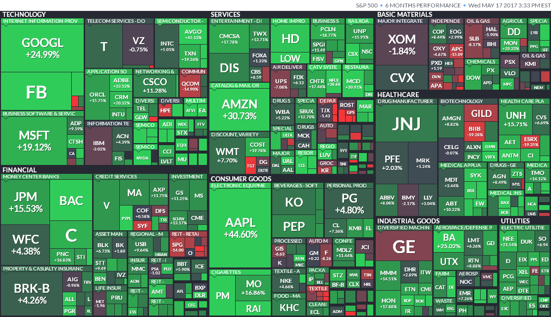 Últimos 6 meses do sp500, mais ou menos desde a eleição de trump.