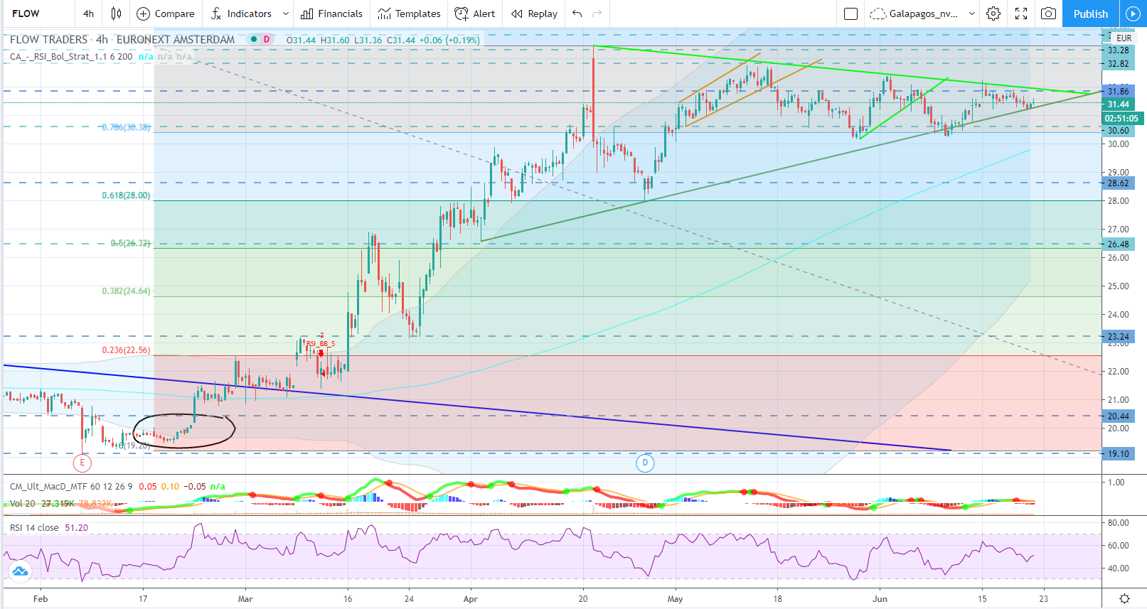 Com o vix a subir devido À tensao com o irão, e possivel dividendo de 6%, o gráfico está a compor-se. Penso q pode ir aos 23.22 na proxima semana.