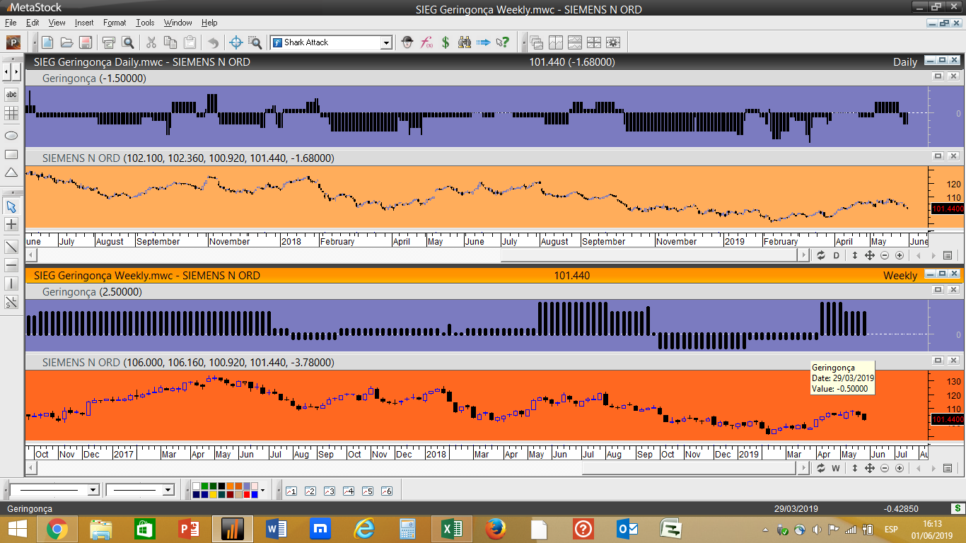 Uma vez que as escalas mais lentas (diária e semanal) se encontravam ascendentes, o sinal de compra nesta acçao acaba de ser disparado no sistema de trading geral.