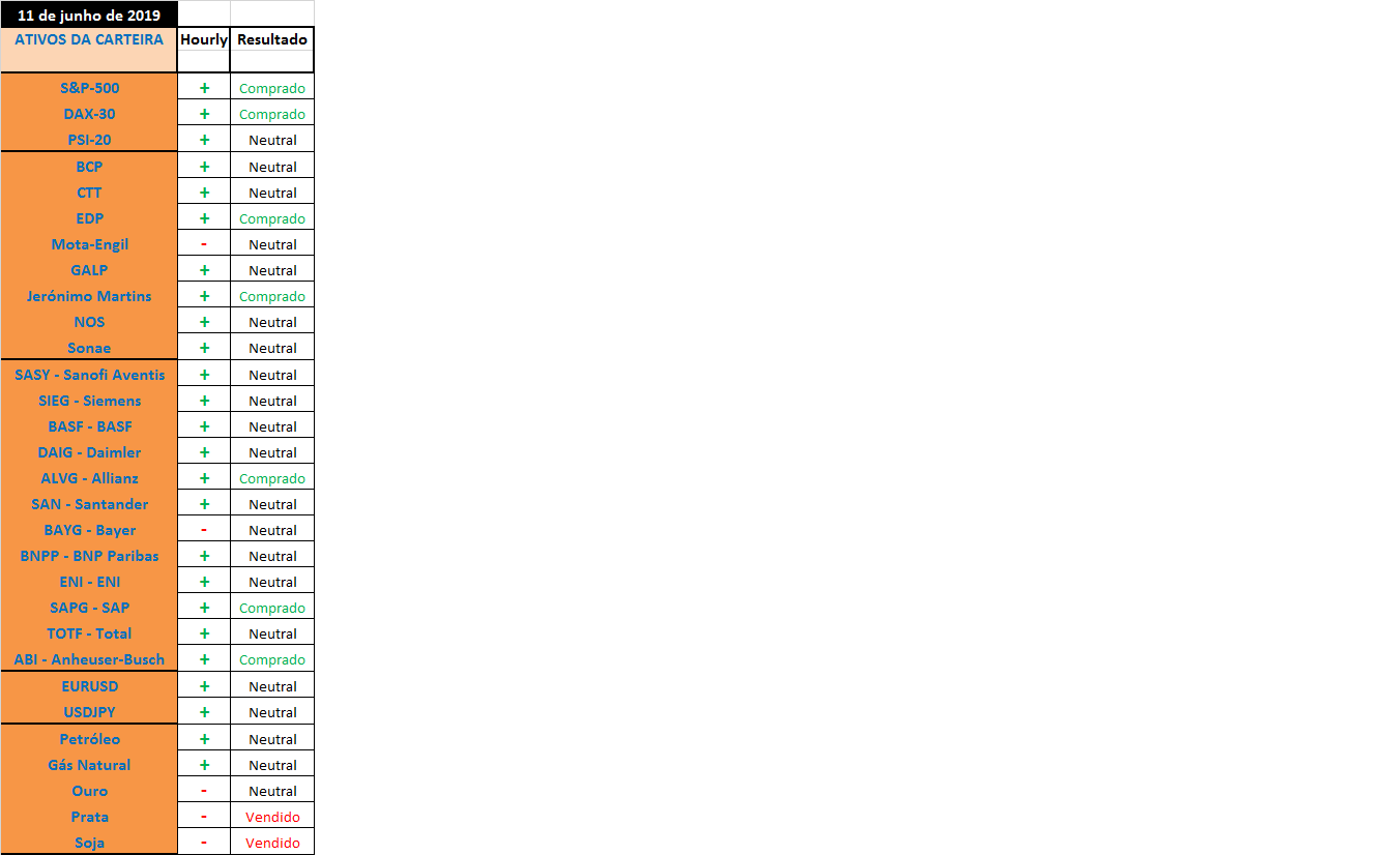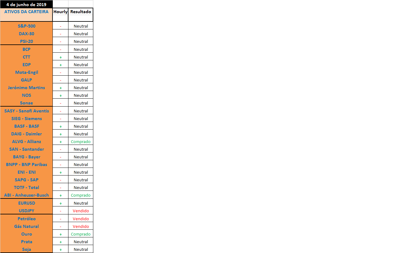 Fica difícil atualizar as posiçoes com um timing adequado no final de cada semana porque a movimentaçao ou a alteraçao entre compras e vendas aumenta de forma evidente com a introduçao do filtro de sinais de escala horária, no entanto e para já é o melhor que consigo arranjar para deixar aqui no forum.