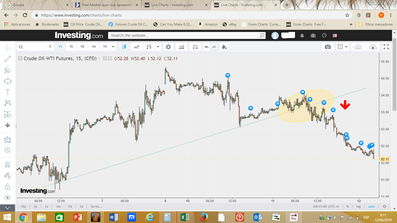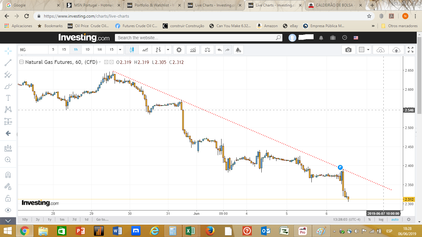 Uma tendência horária bem definida pode ser exemplarmente representada pelo comportamento do Gás Natural, uma descida iniciada no passado dia 29 da semana transacta que parece mais um escorrega sem fim.