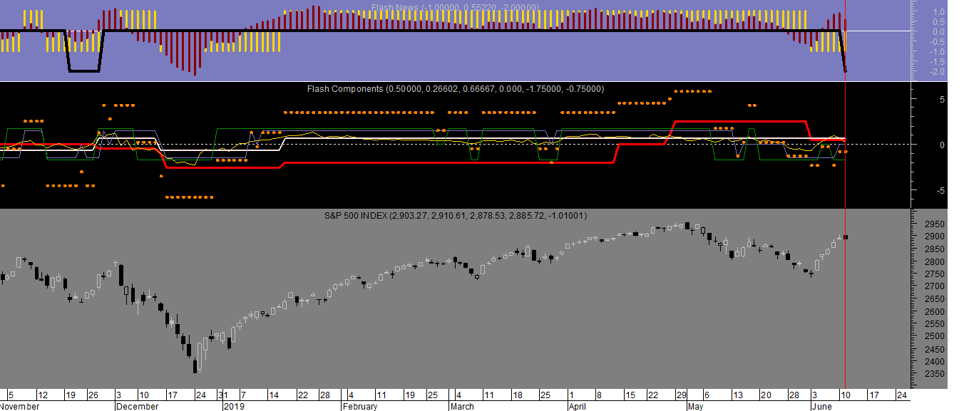 No decorrer da sessao registaram-se algumas alteraçoes no sentido dominante da escala horária, no entanto a única mudança de posiçao verificou-se apenas no S&P 500, que passa a neutral devido ao aparecimento de um sinal estocástico descendente no gráfico diário.