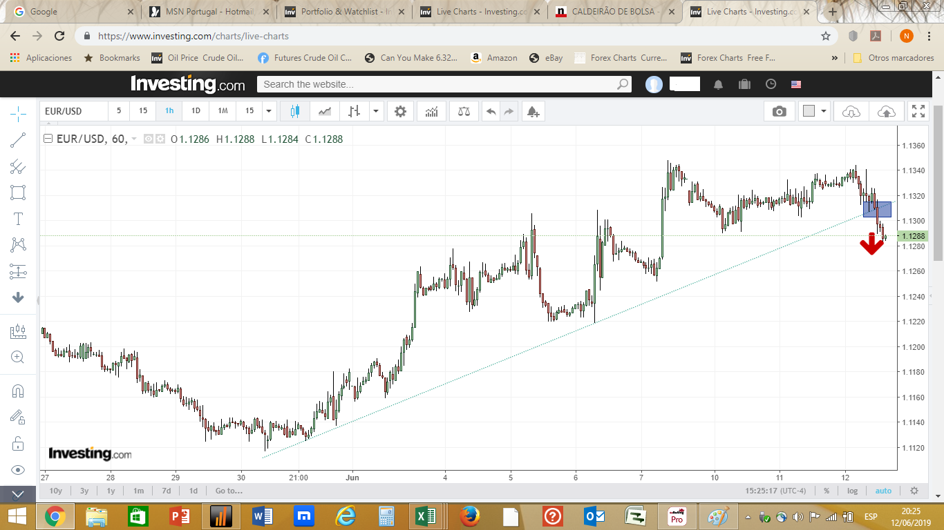 Fica também um gráfico horário do S&P 500 spot com a zona do suporte de perigo que poderá originar a saída das posiçoes longas assumidas no mercado norte-americano.