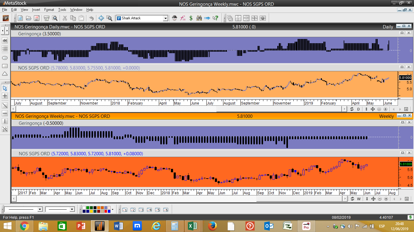 Existe contudo para hoje uma novidade nas escalas mais lentas, registaram-se sinais de compra em 2 açoes tugas: na EDP e na JMT.