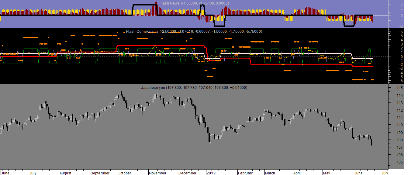 Seguindo as regras de compatibilizaçao temporal, na sessao de hoje há a registar a passagem de vendido a neutral do par USDollar/Yen, uma vez que o seu sentido horário terá passado a positivo, ao contrário do seu rating diário/semanal.