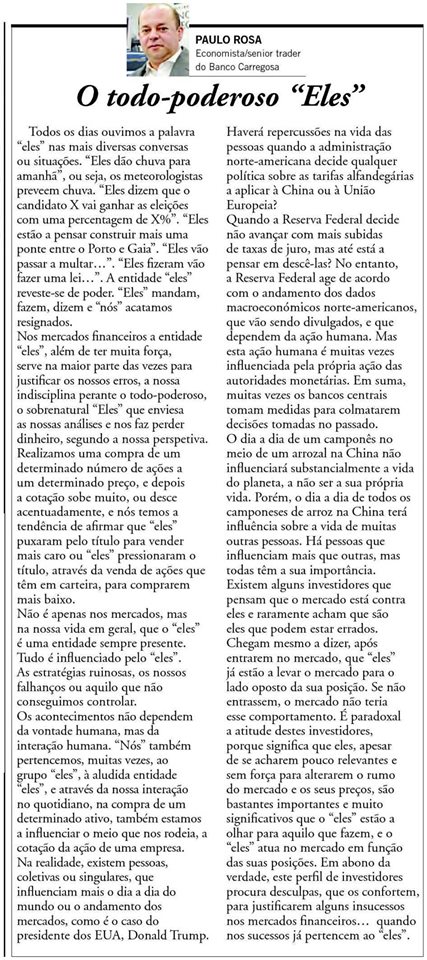 Deixo aqui um excelente artigo do Paulo Rosa no semanário "Vida Económica". Subscrevo na íntegra.