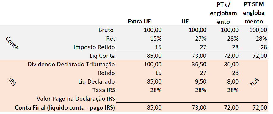 Basicamente estou a tentar saber quais são as diferenças a nível de fiscalidade entre dividendos recebidos de empresas portuguesas vs empresas do US e europeias?